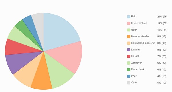 Verdeling per gemeente:
