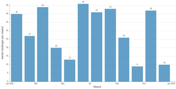 Verdeling meldingen over het jaar 2025: